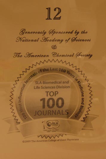 DBIO 100 Awards: Journals of the Century. Tuesday June 16, 2009